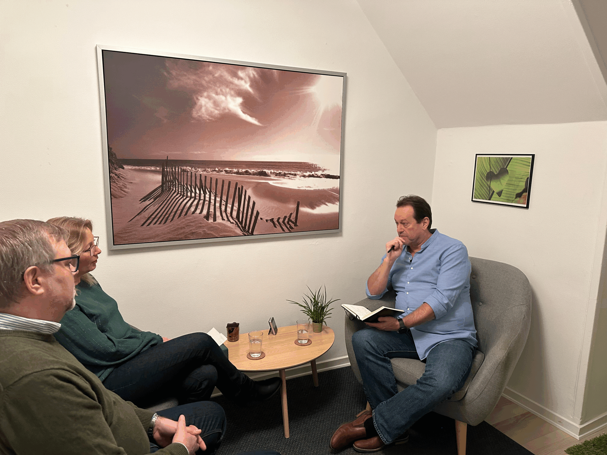 I får konkrete øvelser og hjemmearbejde, så I kan arbejde videre mellem sessionerne mod jeres fælles fremtid.