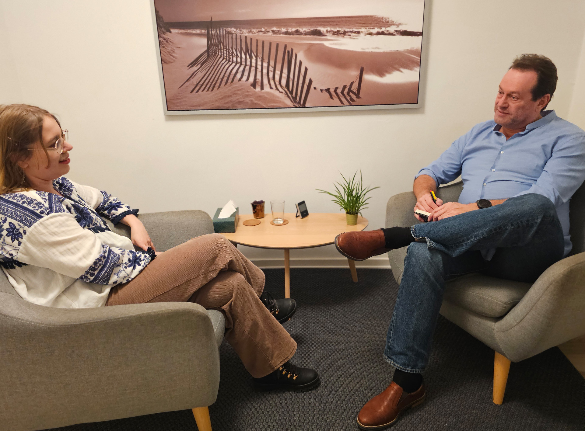 Samtalerne foregår i et trygt og fortroligt rum, hvor du kan tale frit og undersøge dine egne mønstre og reaktioner.
